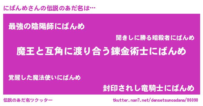 | 意味不明あだ名 | 『眠気覚ましガムにばんめ味』 |