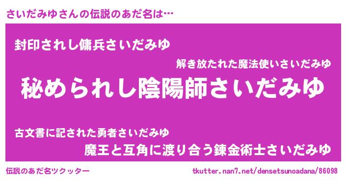 | 男性向けラノベタイトル風あだ名 | 『サイダミユスレイヤー』 |