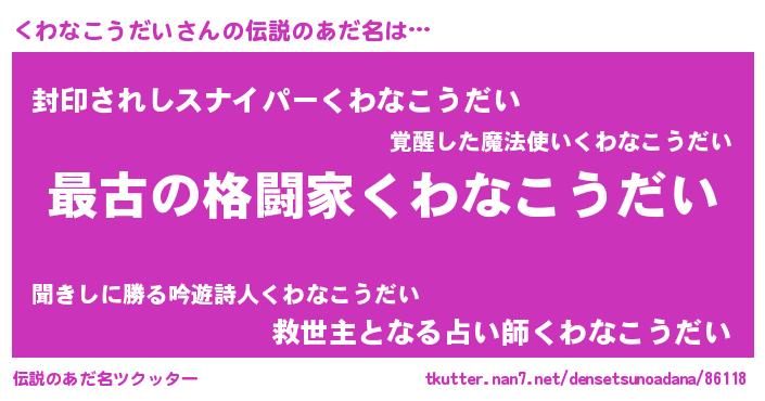 | 意味不明あだ名 | 『住所不定無職くわなこうだい(10歳)』 |