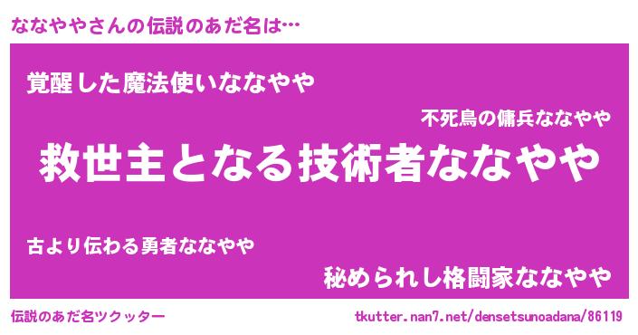 | ヒーロー風カッコイイあだ名 | 『慈愛の使者ななやや』『幻影騎士ナナ』 |