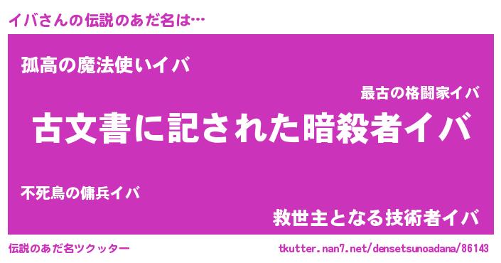 | 意味不明あだ名 | 『永久保存イバ』『とにかく怪しいイバ』 |