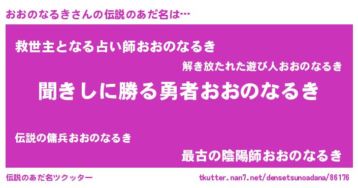 | ヒーロー風カッコイイあだ名 | 『ネオオオノナルキ』『仮面オオダー』 |