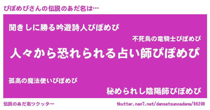 | ヒーロー風カッコイイあだ名 | 『正義の使者ぴぽめぴ』『仮面ピポダー』 |