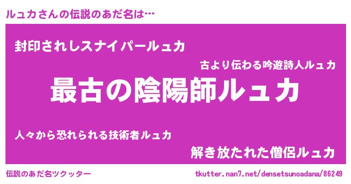 | ファンタジー風あだ名 | 『エターナルルュカー』『ゼルュトゥ』 |