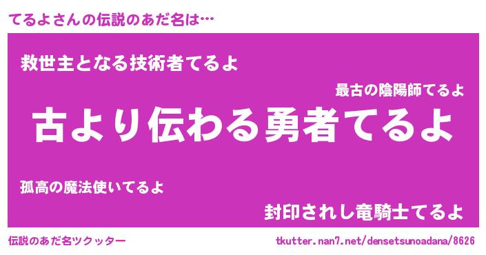| 男性向けラノベタイトル風あだ名 | 『てるよという概念が存在しない退屈な世界 』 |