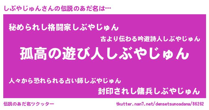 | 男性向けラノベタイトル風あだ名 | 『シブヤジュンスレイヤー』 |
