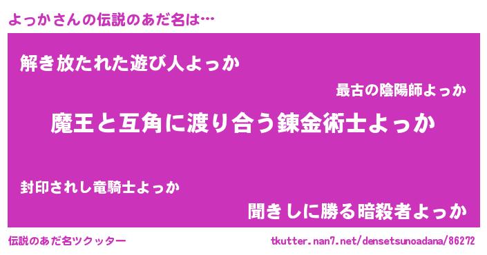 | ヒーロー風カッコイイあだ名 | 『慈愛の使者よっか』『銀牙騎士ヨッ』 |
