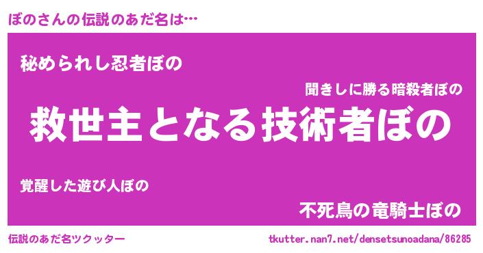 | 男性向けラノベタイトル風あだ名 | 『ぼのに滅ぼされるだけの簡単なお仕事です』 |