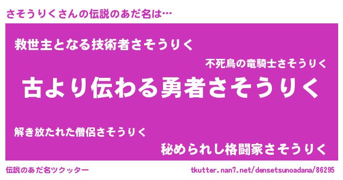 | 意味不明あだ名 | 『永久保存さそうりく』『自称さそうりく』 |
