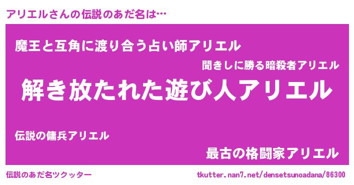 | 欧米人風あだ名 | 『アンジェラ・アリエル』 |