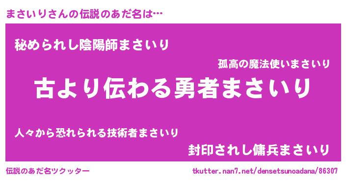 | ヒーロー風カッコイイあだ名 | 『ネオマサイリ』『超時空戦士マサイリ』 |