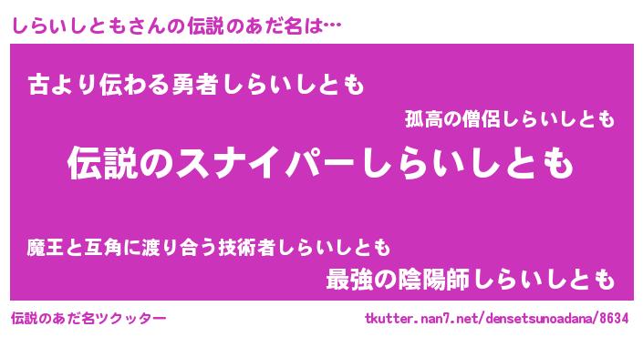 | ヒーロー風カッコイイあだ名 | 『スーパーシライシトモ』『黄金騎士シラ』 |