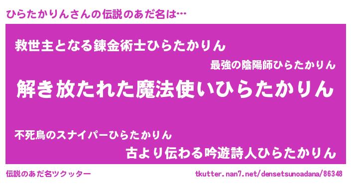 | 意味不明あだ名 | 『とにかく怪しいひらたかりん』 |