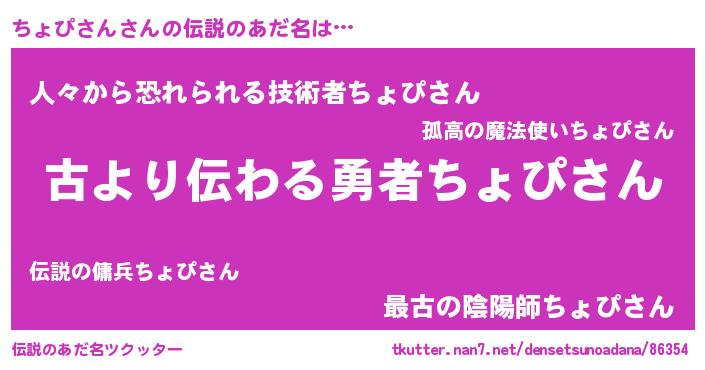 | 意味不明あだ名 | 『自称ちょぴさん』『永久保存ちょぴさん』 |