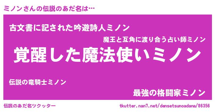 | 男性向けラノベタイトル風あだ名 | 『うちのミノンが世界を掌握している!』 |