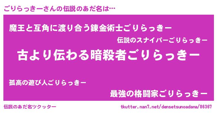 | 胡散臭い通販商品みたいなあだ名 | 『来世でも幸せになれる健康食品…その名も「ごりらっきー」』 |