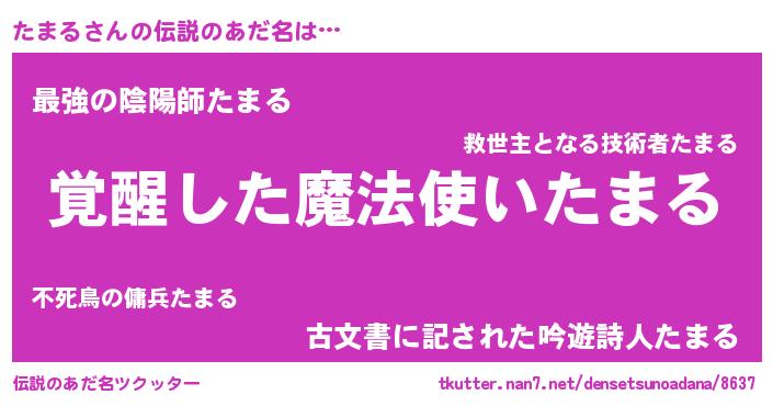 | 男性向けラノベタイトル風あだ名 | 『たまるの嫁は女の子じゃないと思った?』 |