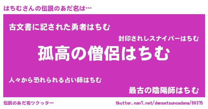 | 女子向けラノベタイトル風あだ名 | 『はちむは平凡を望む』『闇のはちむ』 |