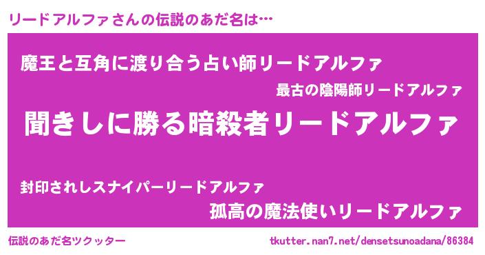 | 意味不明あだ名 | 『永久保存リードアルファ』 |
