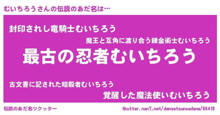 | 意味不明あだ名 | 『むいちろうフォーエバー』 |