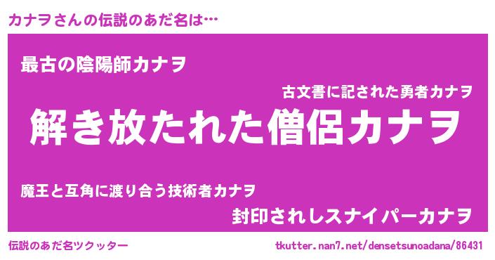 | ヒーロー風カッコイイあだ名 | 『サイバー戦士カナヲ』『銀牙騎士カナ』 |