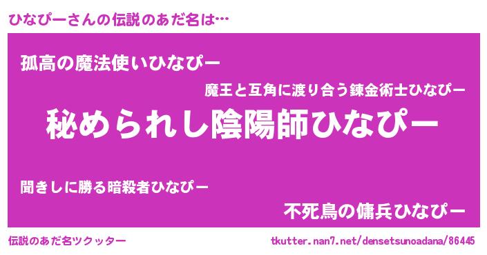 | 男性向けラノベタイトル風あだ名 | 『ヒナピースレイヤー』『ひなぴーの憂鬱』 |