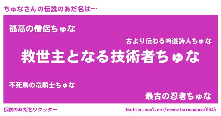 | 意味不明あだ名 | 『眠気覚ましガムちゅな味』『自称ちゅな』 |