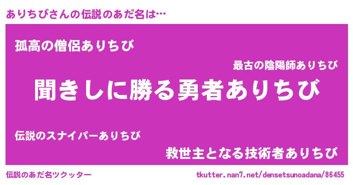 | ヘコむあだ名 | 『ありちび(遠い目)』『ありっぺ』 |