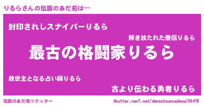 | 意味不明あだ名 | 『りるらフォーエバー』『ペロリンりるら』 |