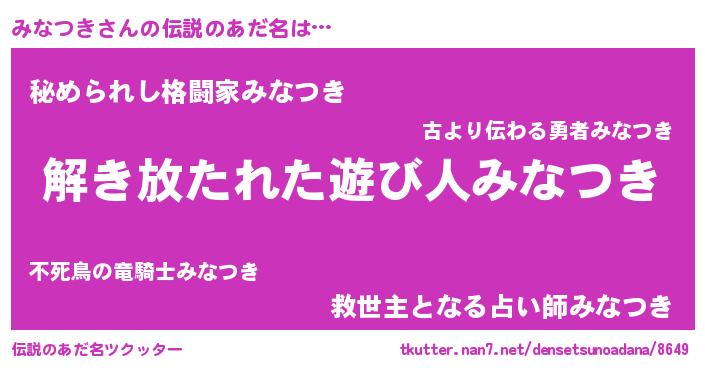 | ヒーロー風カッコイイあだ名 | 『幻影騎士ミナ』『ウルトラみなつきマン』 |