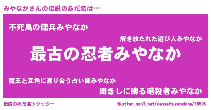 | 意味不明あだ名 | 『みやなかフォーエバー』『自称みやなか』 |