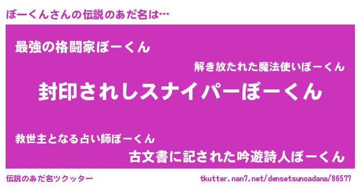 | ヒーロー風カッコイイあだ名 | 『究極戦士ボークン』『スーパーボークン』 |