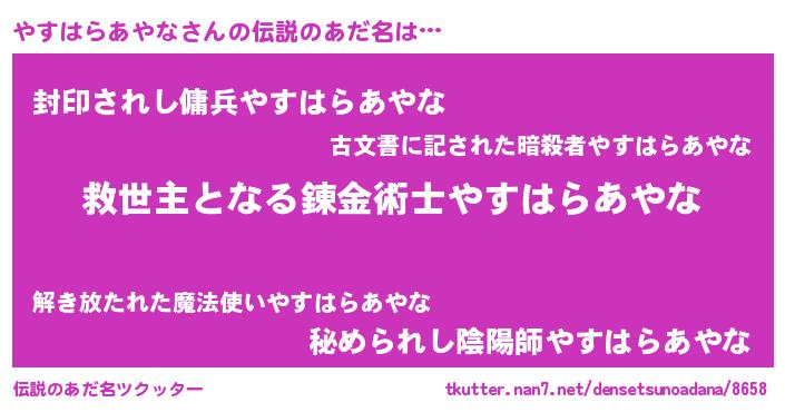 | ヒーロー風カッコイイあだ名 | 『天空の使者やすはらあやな』 |