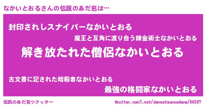 | 意味不明あだ名 | 『住所不定無職なかいとおる(47歳)』 |