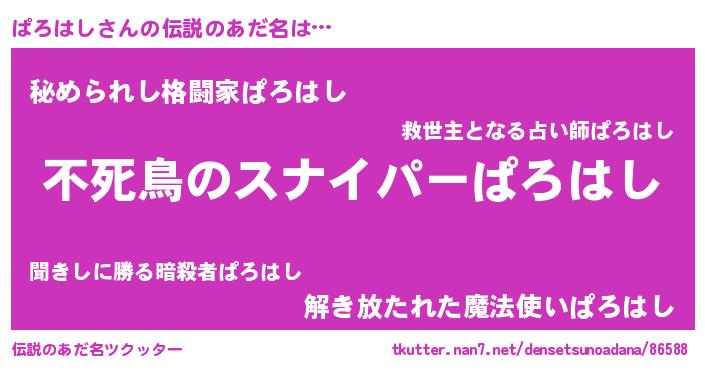 | ヒーロー風カッコイイあだ名 | 『スーパーパロハシ』『魔戒騎士パロ』 |