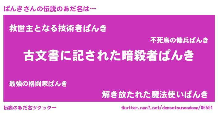 | 意味不明あだ名 | 『永久保存ぱんき』『ヨモギ科ぱんき属』 |