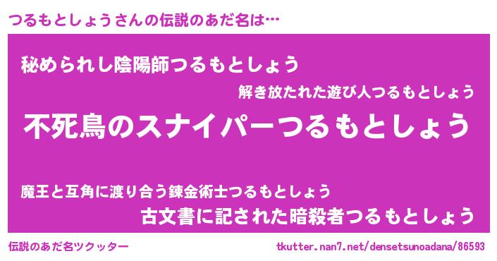| 男性向けラノベタイトル風あだ名 | 『つるもとしょうに滅ぼされるだけの簡単なお仕事です』 |