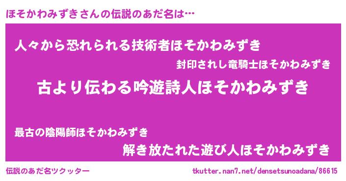| ヒーロー風カッコイイあだ名 | 『ネオホソカワミズキ』『仮面ホソダー』 |