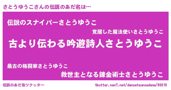 | 意味不明あだ名 | 『永久保存さとうゆうこ』 |