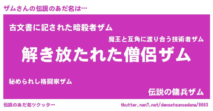 | ヒーロー風カッコイイあだ名 | 『仮面ザムダー』『暗黒騎士ザム』 |