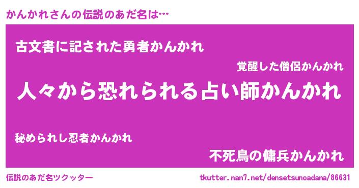 | 意味不明あだ名 | 『めかぶ科かんかれ属』『自称かんかれ』 |
