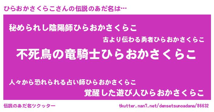 | 男性向けラノベタイトル風あだ名 | 『ヒラオカサクラコアートオンライン』 |