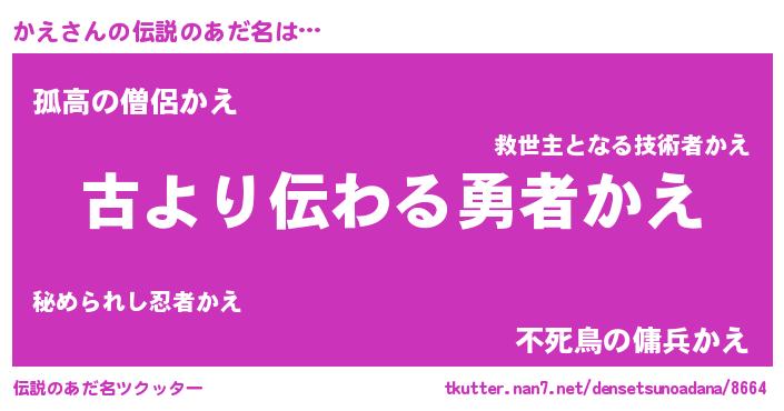 | 男性向けラノベタイトル風あだ名 | 『魔法科高校のかえ』『魔弾の王とかえ』 |