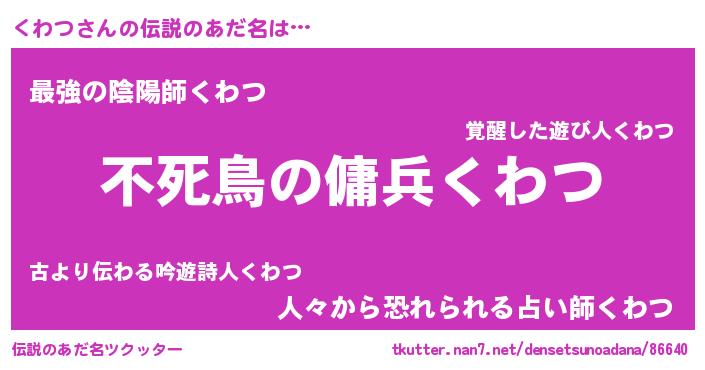 | 男性向けラノベタイトル風あだ名 | 『くわつの憂鬱』 |