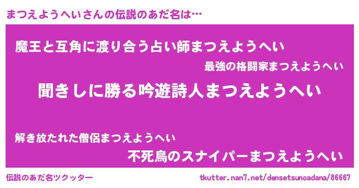 | 意味不明あだ名 | 『永久保存まつえようへい』 |