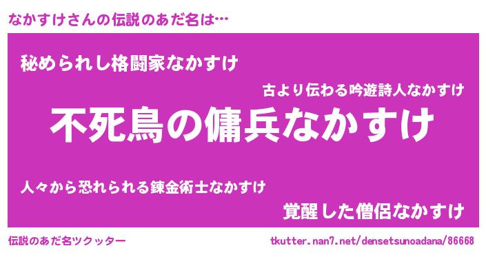 | 女子向けラノベタイトル風あだ名 | 『なかすけ姫と円卓の騎士』 |