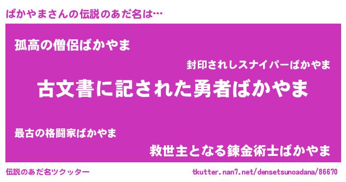 | 意味不明あだ名 | 『自称ばかやま』『永久保存ばかやま』 |