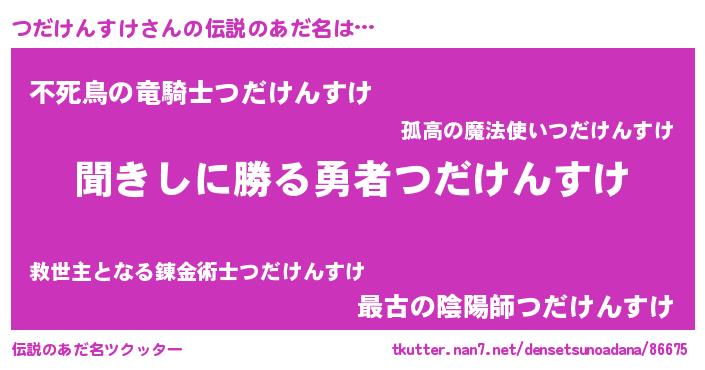 | 男性向けラノベタイトル風あだ名 | 『つだけんすけという概念が存在しない退屈な世界 』 |