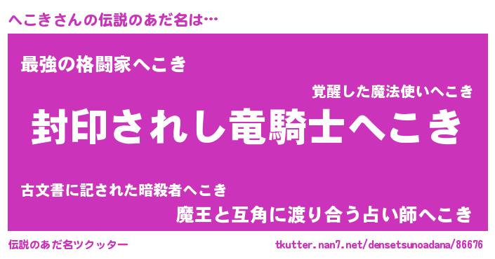 | 2回繰り返すあだ名 | 『へこへこ』『どばどば』『へへここ』 |