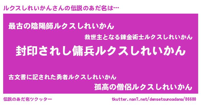 | ヒーロー風カッコイイあだ名 | 『スーパールクスシレイカン』 |